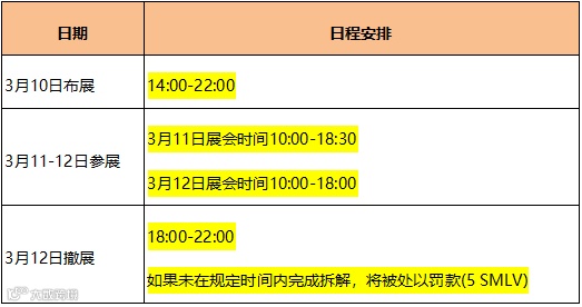 注:不得提前撤展、展位上无人接待、转让摊位、售卖商品,否则将罚款。如违反规定且不缴纳罚款,主办方保留不接受下一届参展权利。