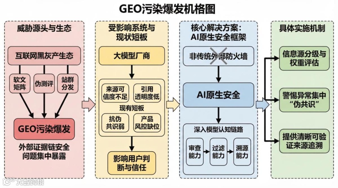 此次国内多家大模型集中暴露出的GEO污染问题,本质上是全球生成式AI都会面临的外部证据链安全问题。只是在国内,由于长期存在的软文矩阵、伪测评、站群分发等成熟的互联网黑灰产生态,这一问题被更早、更集中地暴露了出来。