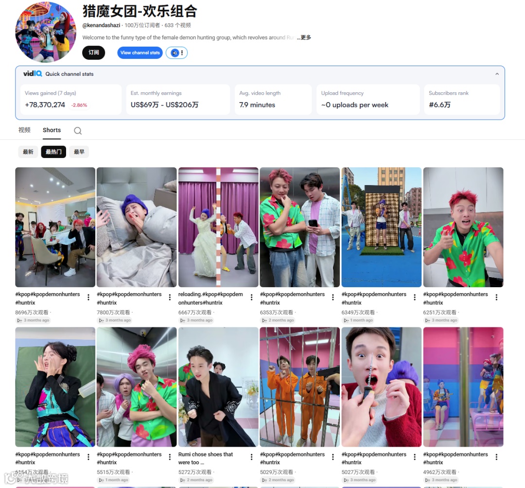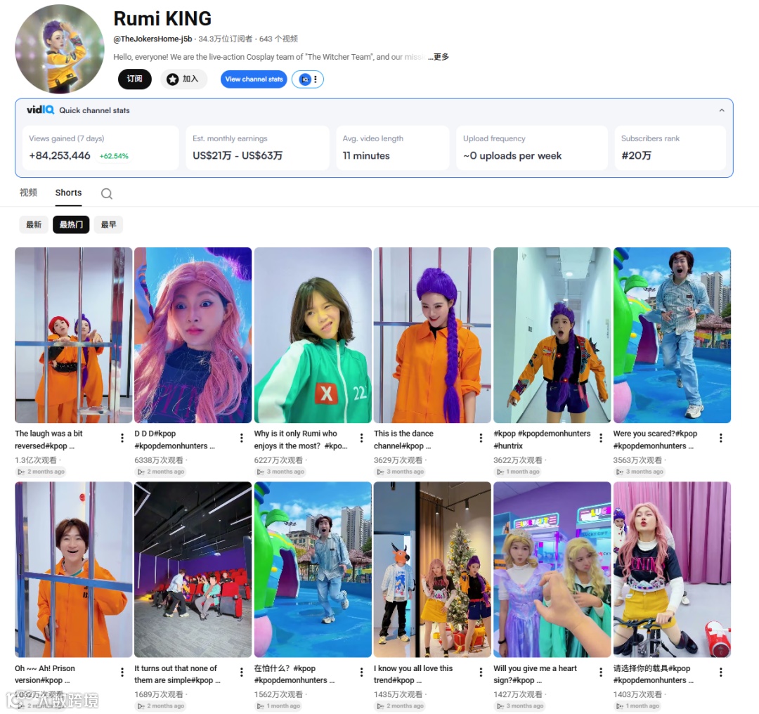 我们是YouTube博主,奥斯卡获奖影片跟我们本身没有一毛钱关系;但如果说这两年你看过油管视频或者说做过油管博主,那你应该知道 K-POP 猎魔女团这个 IP 在油管的影响力有多大;(以下 k-pop 猎魔女团,简称 kpop)