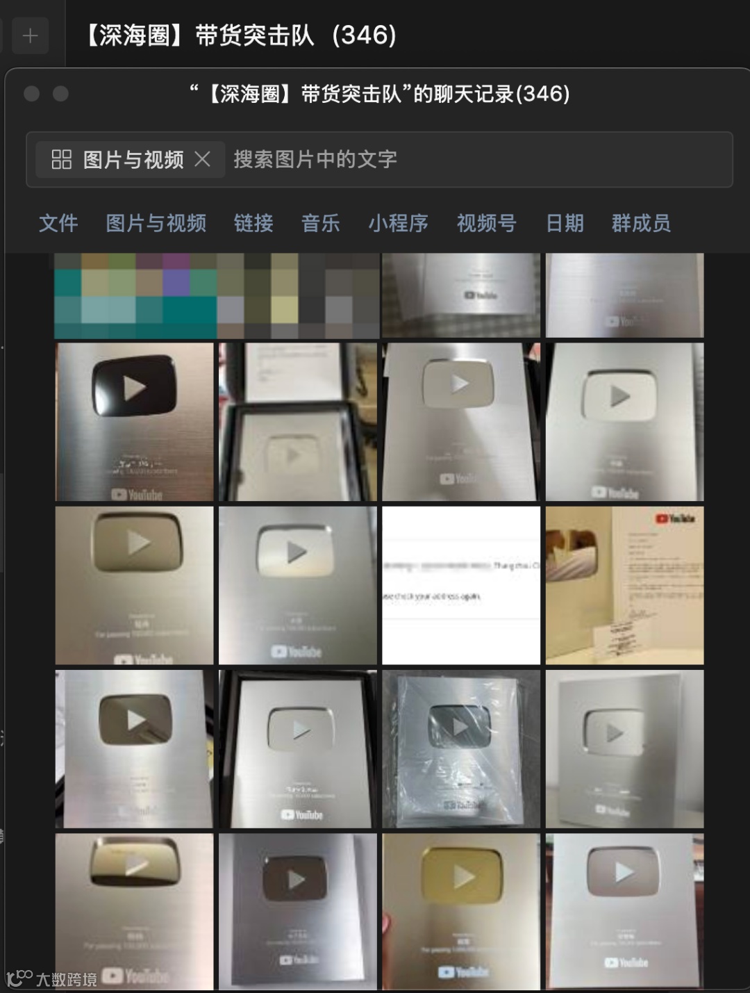 说到带货,我们 YouTube 深海圈社群-带货群圈友拿到 YouTube 银牌/金牌的截图,去年的聊天记录了,截止目前有超 100 块 YouTube 奖牌;
