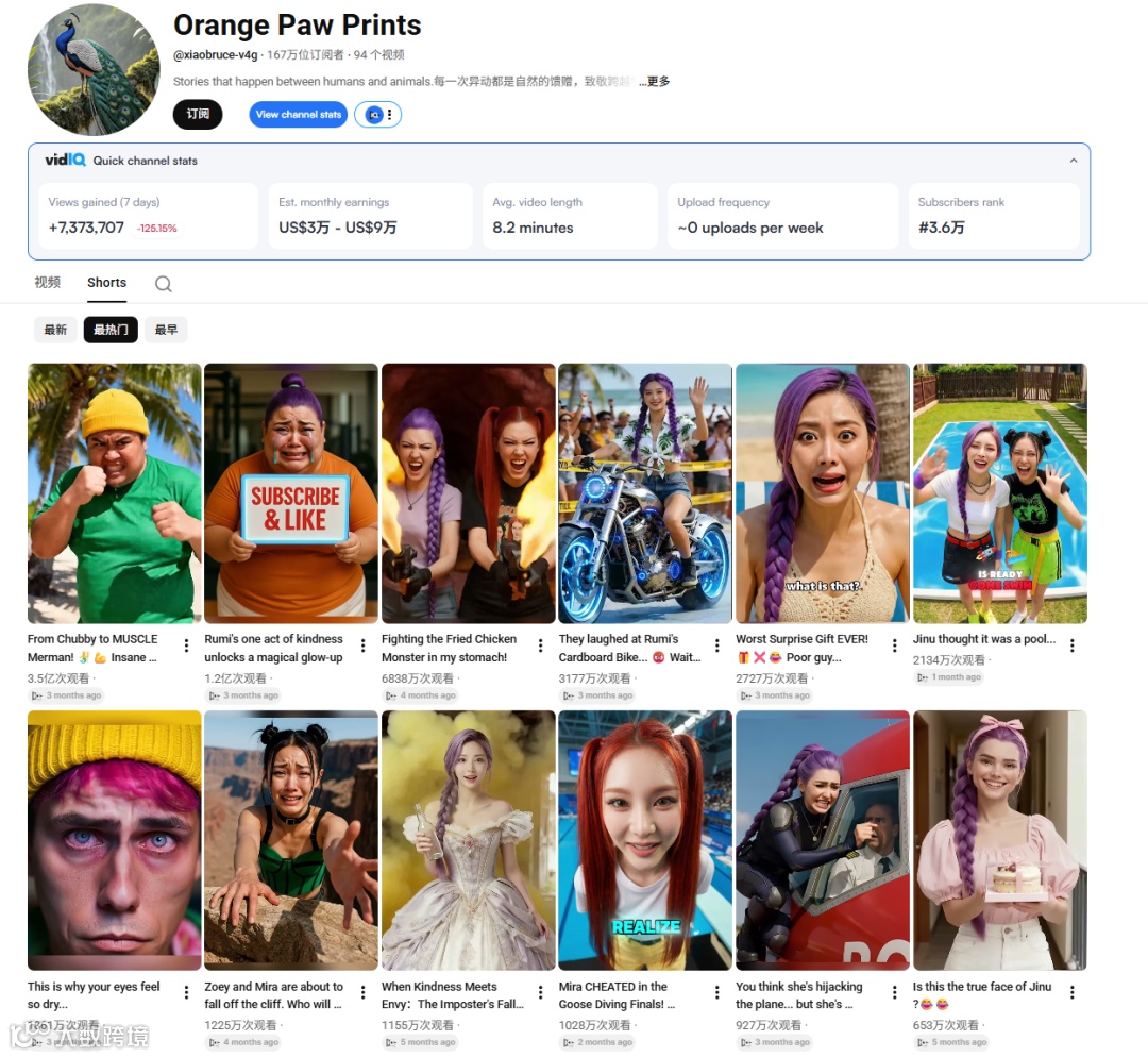除了真人博主以外,还有一群人在油管拿到了数百亿流量,背后的创作者就是我们;我截几张同赛道对标账号给大家看看数据。(不排除也是自己人...)