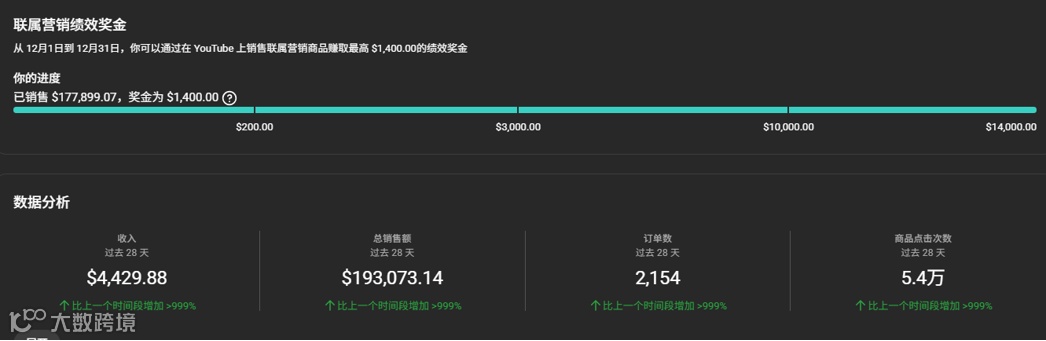 我还想说的是除了流量收益以外,实际上 YouTube 还有非常强的带货潜力,以下是我们YouTube 深海圈四水年华圈友的收益截图;单月带货GMV19.3万美金,带货佣金4429美金+带货激励1400美金。