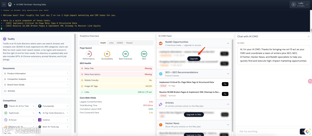 AI CMO 只需要输入你的网址,直接就可以帮你获取流量和用户。