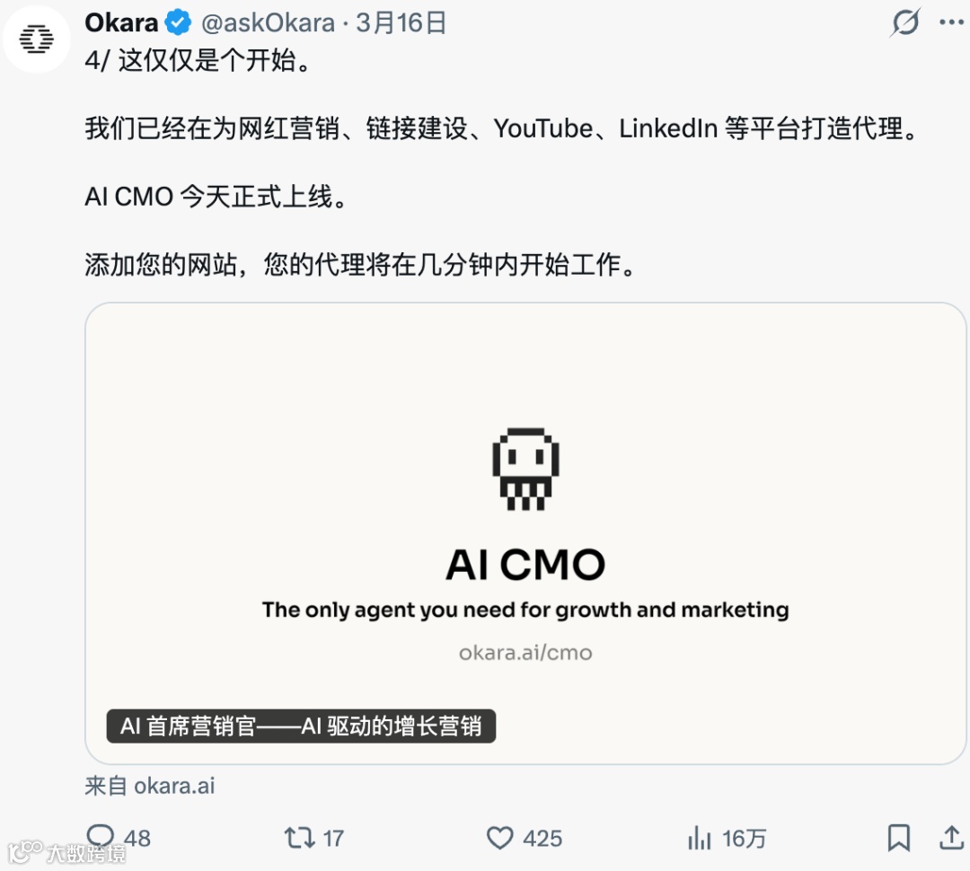 很多人用AI做了产品不知道如何营销,他们直接做了一位AI首席营销官(AI CMO)。