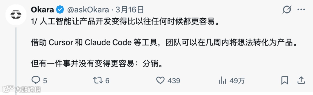 Okara 在推特上发的第一条就说出了做产品的真相: