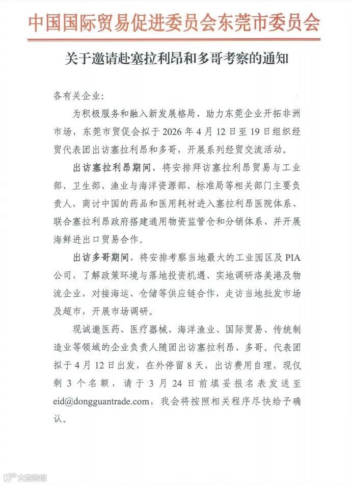 导读:【活动】关于邀请赴塞拉利昂和多哥考察的通知