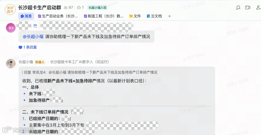 北汽旗下长沙工厂 Agent “长超小福” 与员工进行生产启动的协作