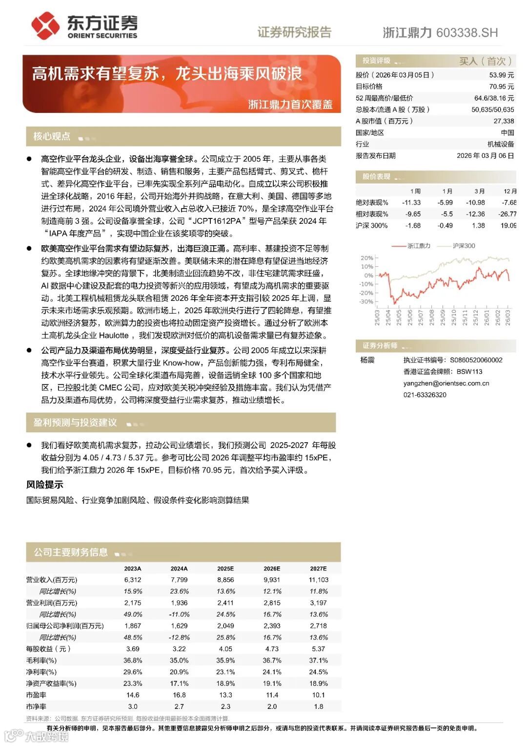 浙江鼎力(603338)首次覆盖:高机需求有望复苏,龙头出海乘风破浪(附下载)