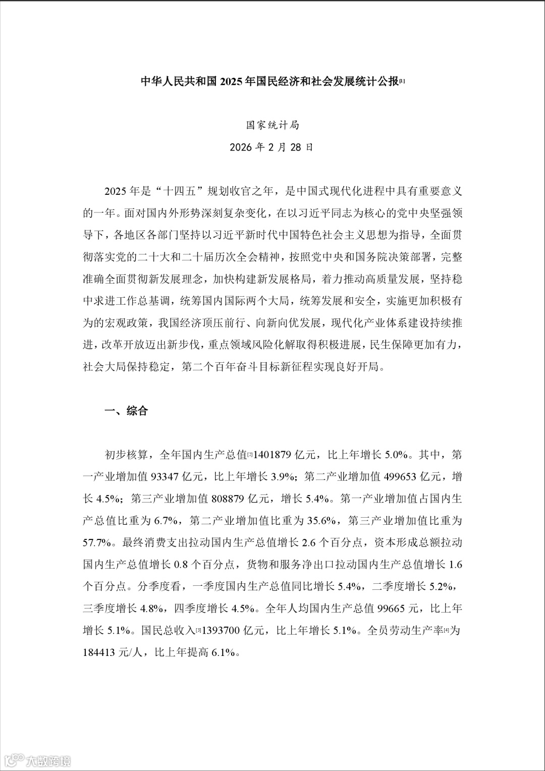 2025国民经济与社会发展统计公报