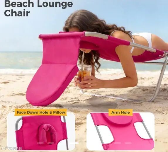 针对晒背时面部易晒黑、呼吸不畅、无法刷手机或持饮等实际痛点,中国制造的专用日光浴沙滩折叠椅迅速走红。产品设有面部通气孔及手臂下伸孔,兼顾舒适性与实用性。