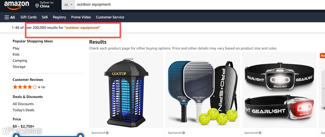 欧美户外活动普及带动便携类装备需求增长,亚马逊平台“户外装备”相关搜索链接超20万条。