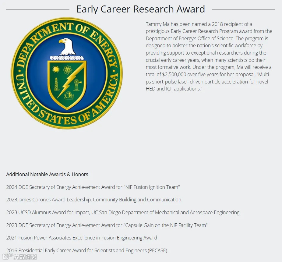 她先后就读于加州理工学院航空航天工程系、加州大学圣地亚哥分校,获硕士与博士学位,2010年正式加入LLNL,投身“人类最难的科学问题”之一:可控核聚变。