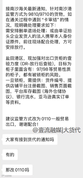近日,盐田港、南沙港对9810/9710模式出口货柜的查验力度明显加大,部分货柜出现“卡审结”“被锁柜”等情况。