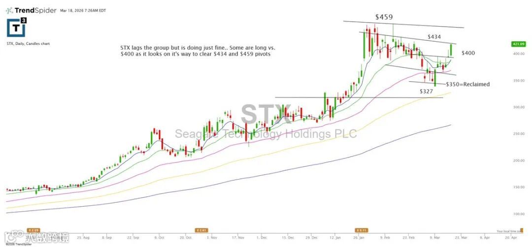 STX虽相对滞后,但结构向好。以400为防守持有多单,正尝试突破434及459两个关键枢轴位。