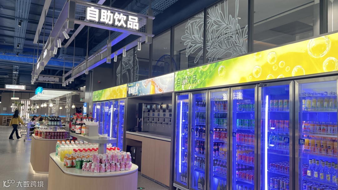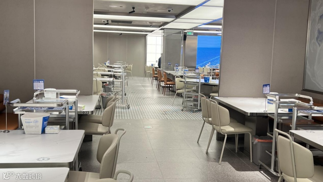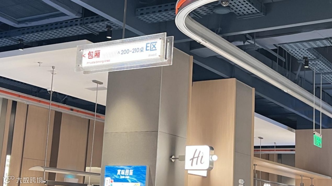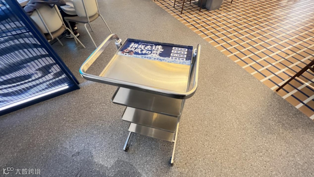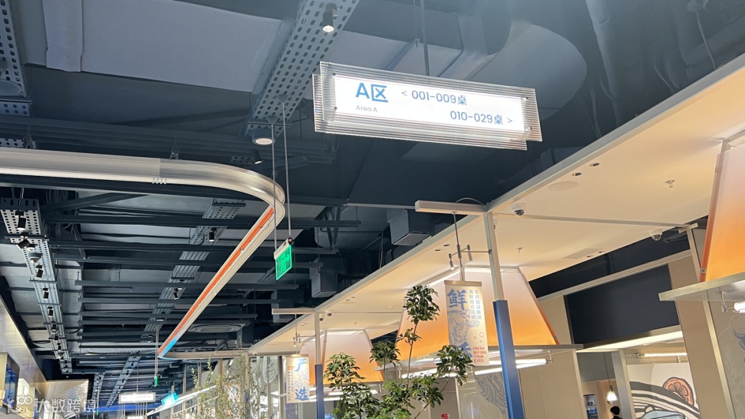 门店面积超3000㎡,功能分区清晰:等位区、取餐台、就餐区(含A~G区及包厢),取餐区位于进门左手边,菜品按类别分区域陈列,拿取便捷;每桌配小推车,顾客可自助前往各档口取餐。