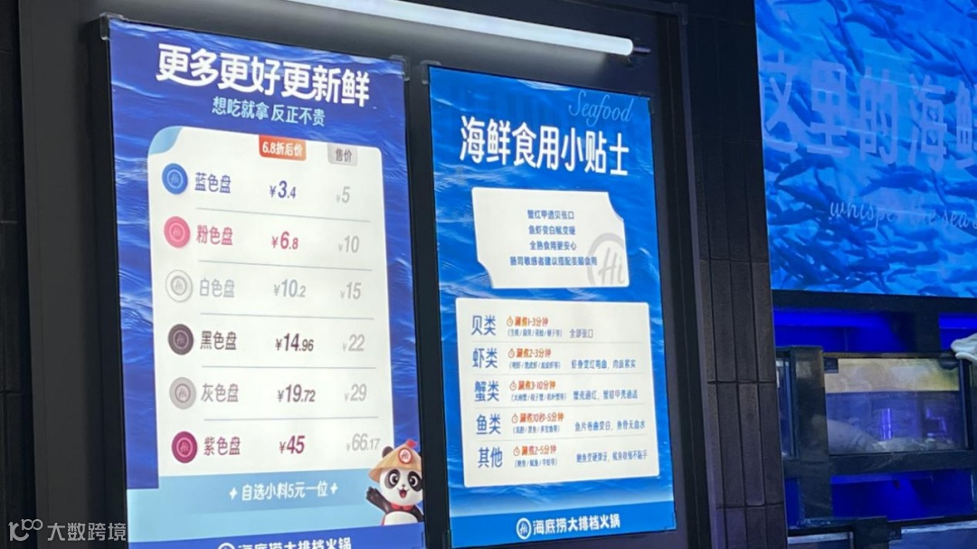 2025年以来,海底捞加速布局海鲜品类:7月在北京开设首家“火锅高档臻选店”,主打粤式海鲜火锅,配备海鲜养殖池,陈列阿拉斯加帝王蟹、澳洲龙虾、东星斑等高端食材,初始人均683元;8月在福州推出“开渔尝鲜季”,主推16.2元/盘的新品组合,含大鲍鱼、大生蚝、青虾、黑虎虾等当季海鲜。全国陆续开业的海鲜大排档火锅店,印证了这一战略方向。