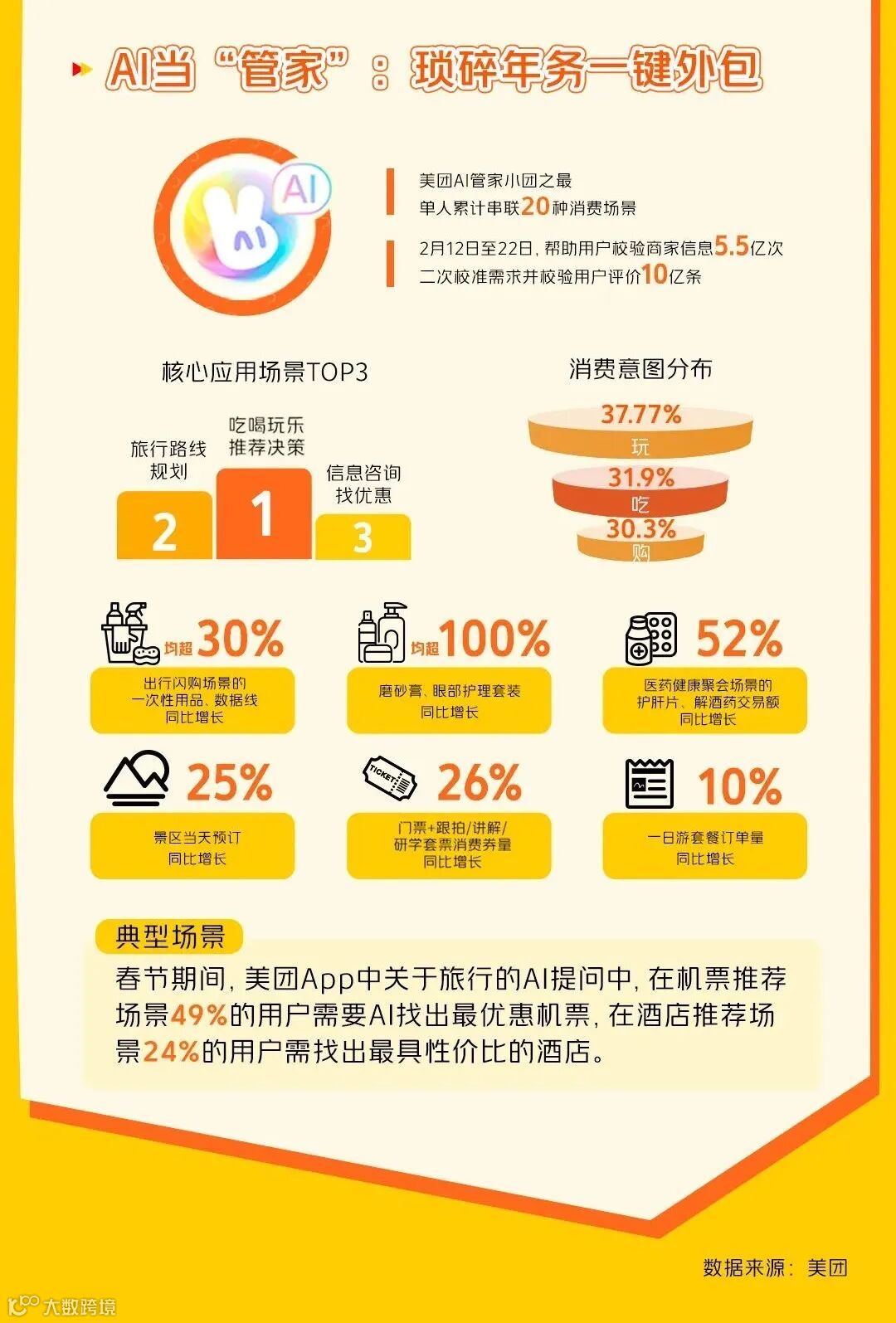 AI方面,美团已上线自研大模型及AI搜索产品“问小团”。春节期间,“小团”累计校验商家信息5.5亿次、用户评价10亿次。