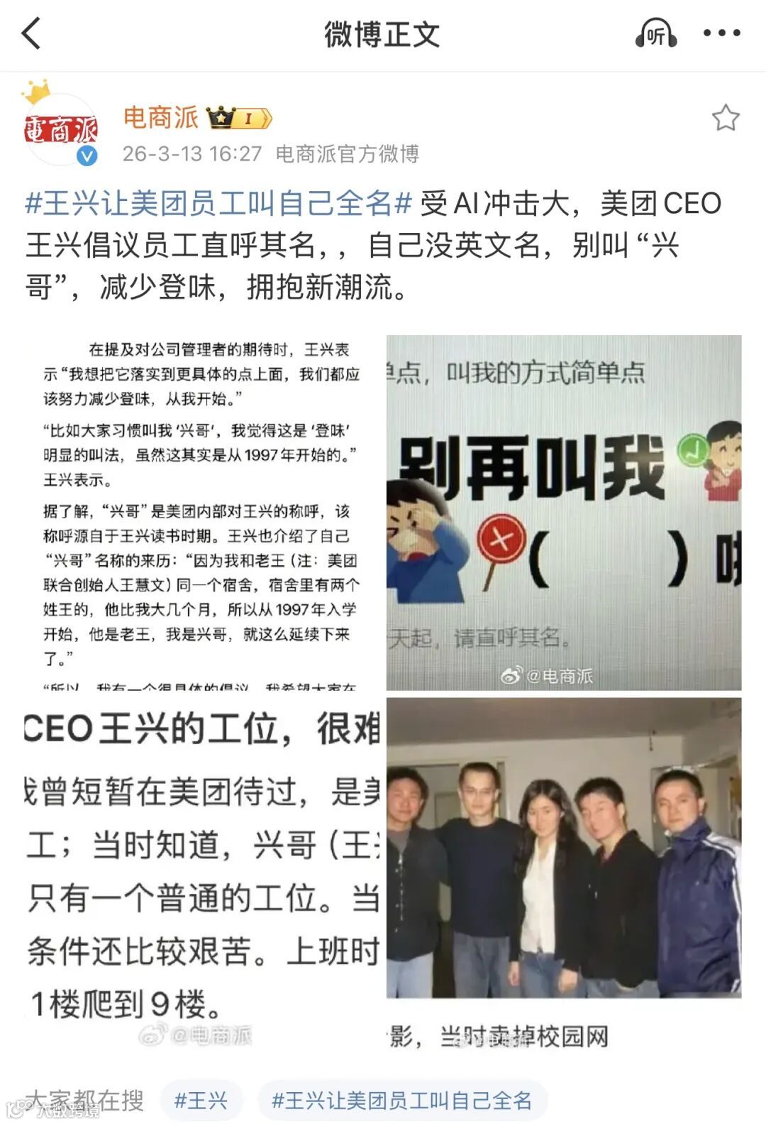 王兴在内部倡导“去称呼化”,要求员工直呼其名,减少形式化表达,强化务实文化。