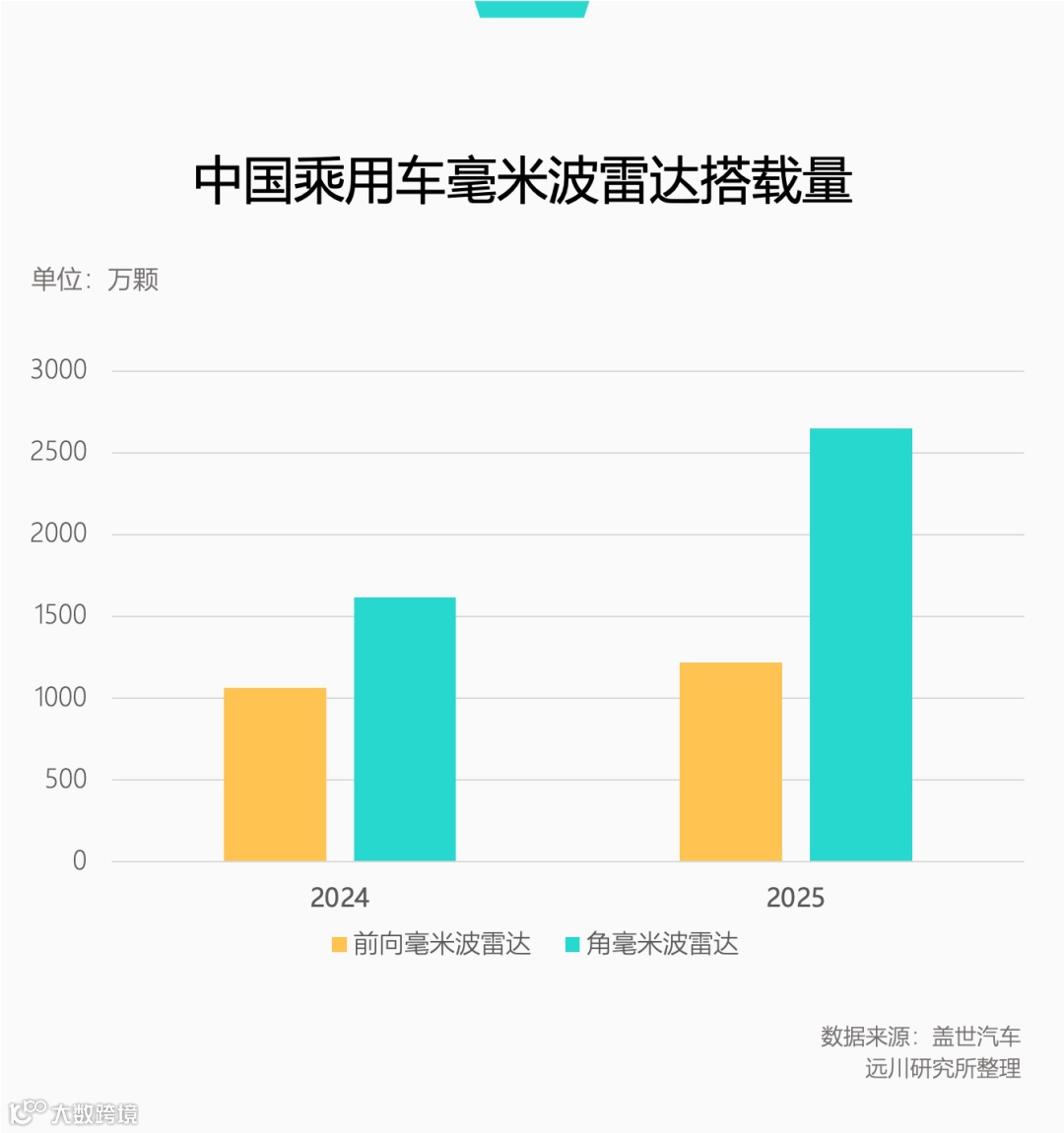 在“全民智驾”趋势下,2023年乘用车前装4D毫米波雷达搭载量超1500万颗,占毫米波雷达总装机量三分之一;其中级联式4D成像雷达交付近260万颗。