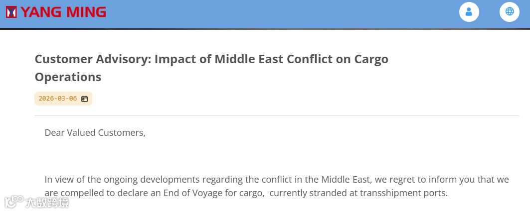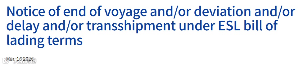 如在2026年3月21日前未收到关于受影响货物的指示,将联系客户确认航程终止。