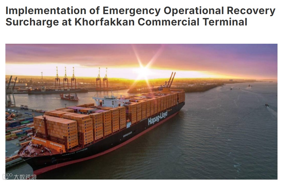 对所有货物起运地至阿曼苏哈尔(Sohar) 和 阿联酋豪尔费坎(Khor Fakkan)的航线征收紧急附加费(ECS)。