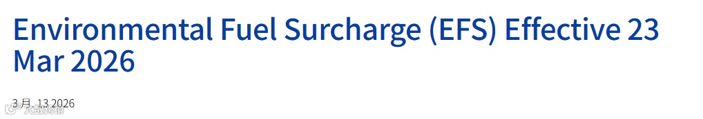 ●自2026年3月23日起,对燃油附加费(EFS)进行调整:价格约为1200–1250美元/吨。
