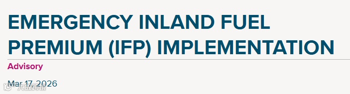 此调整适用于:截至2026年3月3日(含当日及之后)仍在运输途中且尚未完成卸货的货物。