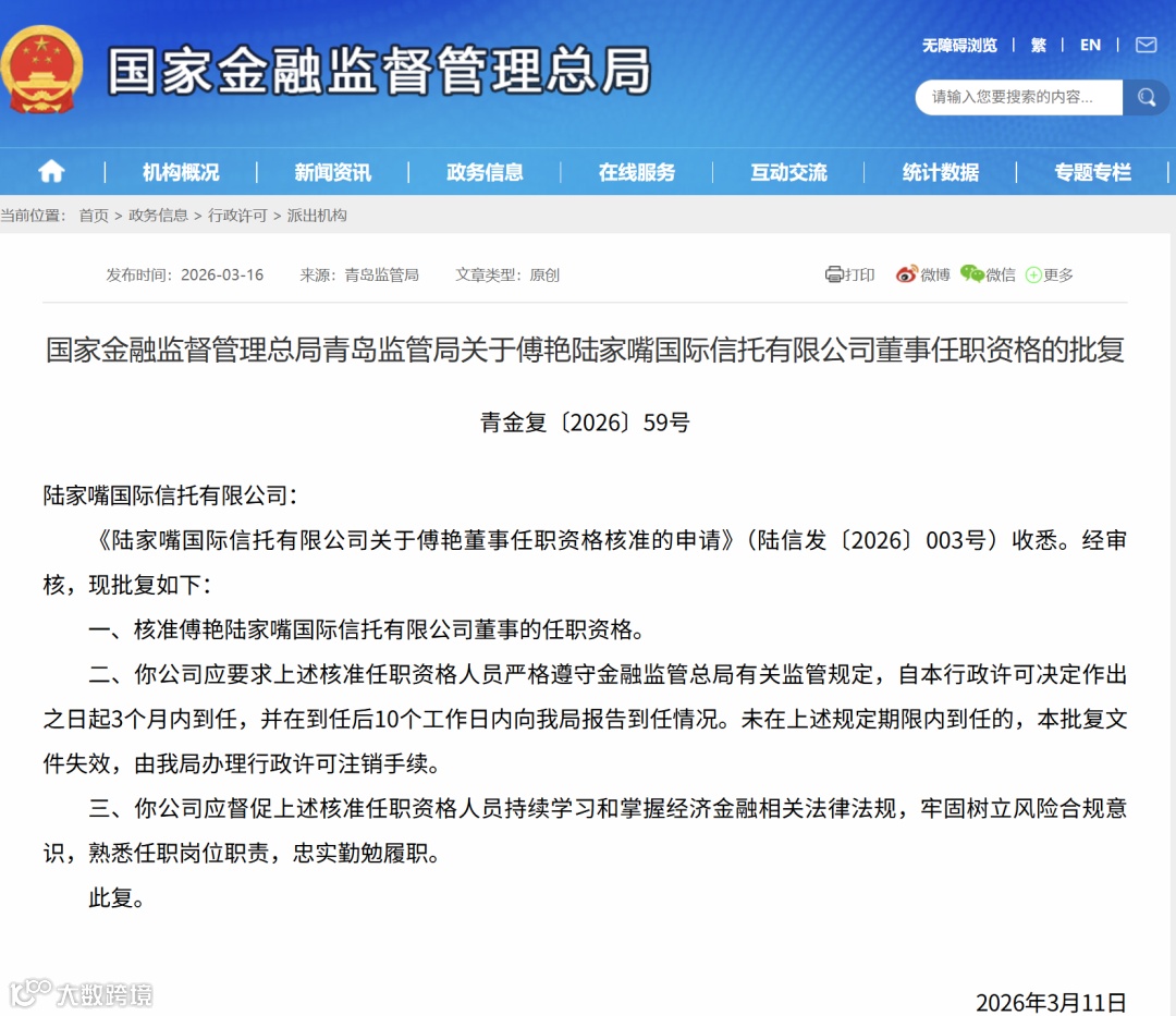 2025年12月,她辞去了中国投融资担保股份有限公司董事职务。公告里写的是“因工作调整”。三个月后,青岛监管局的批复下来了。