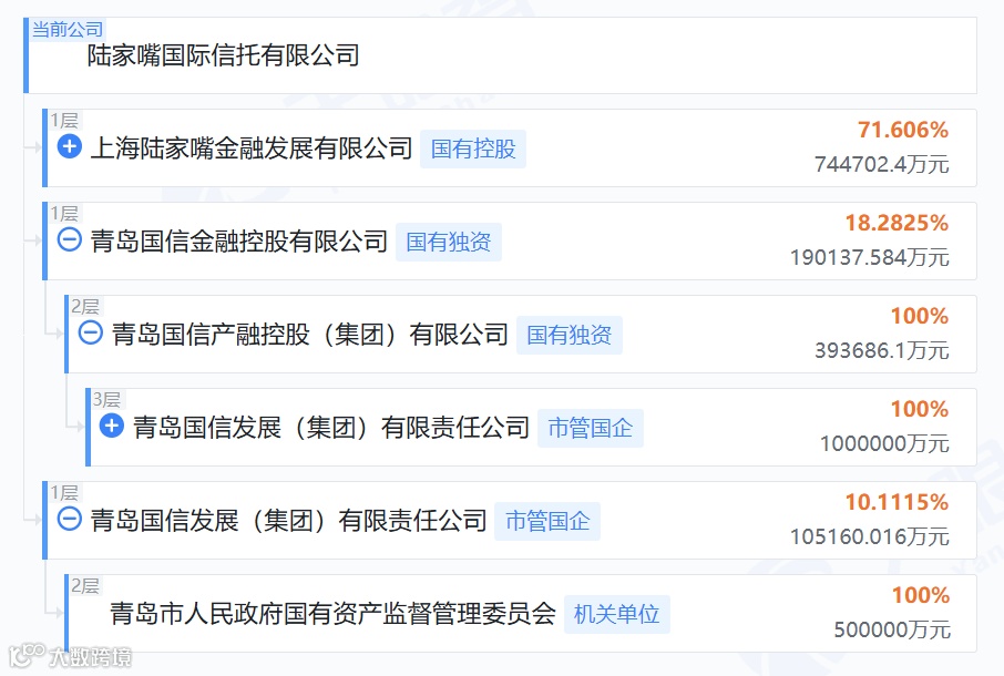 这两层身份并非孤立。青岛国信通过直接和间接方式,合计持有陆家嘴信托约28.4%的股份,是其第二大股东。傅艳从青岛国信产融控股董事的位置,进入陆家嘴信托董事会,是股东意志的延伸——代表持股方参与治理、参与决策。