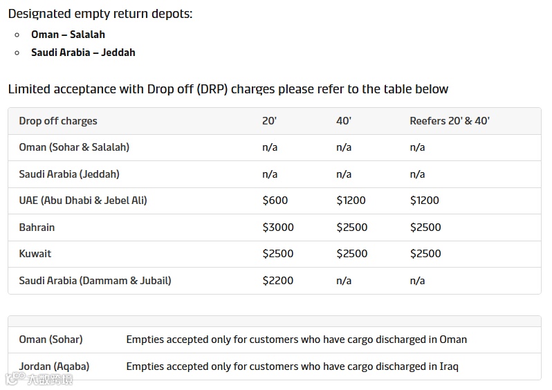 👉 仅接收在阿曼本地卸货客户的空箱约旦亚喀巴港: