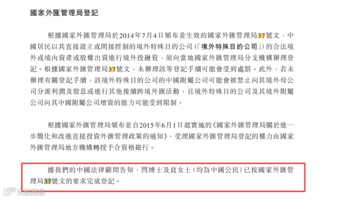 “閆博士及負女士(均為中國公民)已按國家外匯管理局37號文的要求完成登記。”