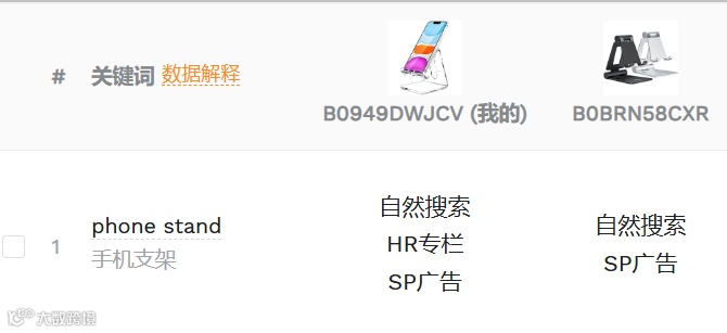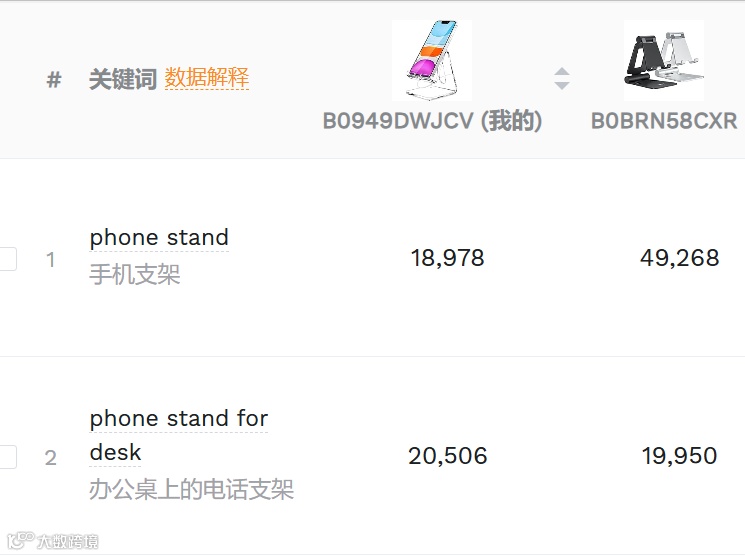 phone stand这类词,我们曝光1.9万,竞品4.9万,就能针对性打核心词/长尾词赶超。