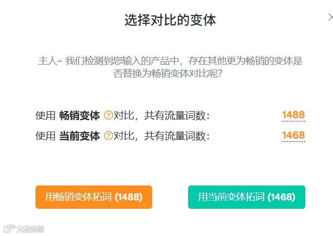 - 第二步:若变体差异大,选「当前变体拓词」;反之选「畅销变体拓词」,能挖到更多流量词