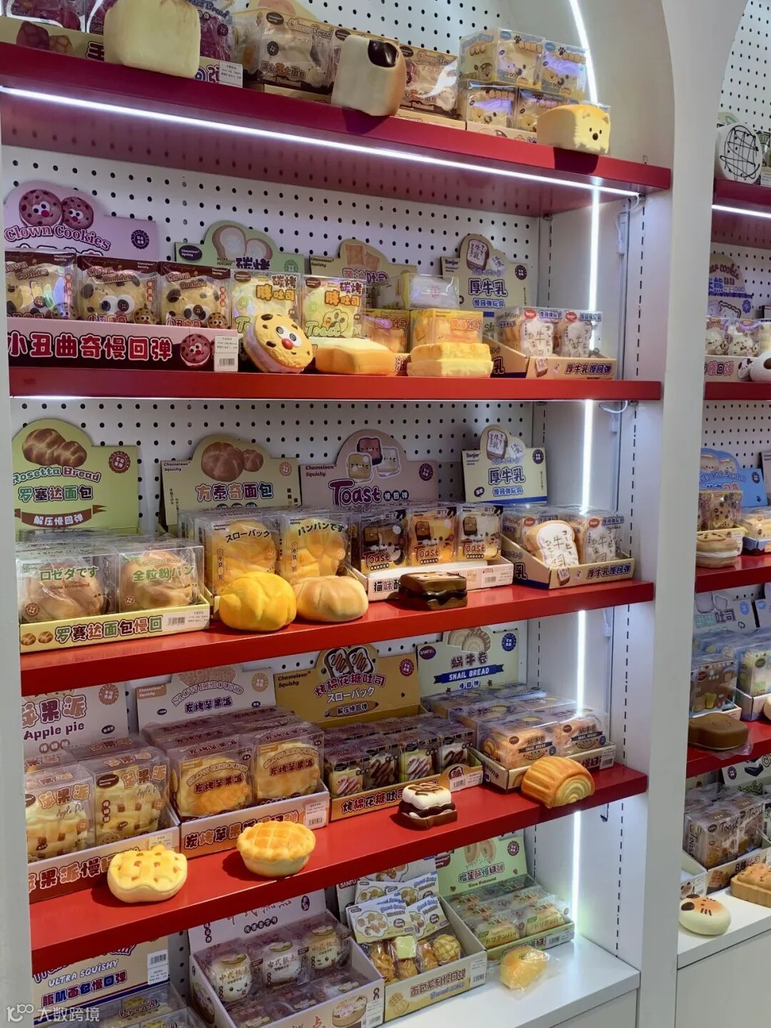 一整面墙的Squishy,每一款背后都有对应的爆款视频。选品从来不是靠感觉,是靠眼睛。