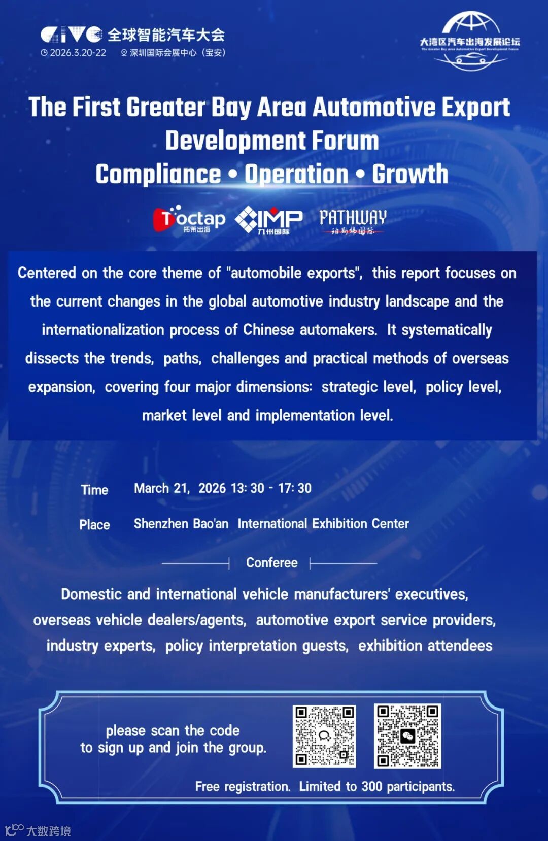 导读:首届大湾区汽车出海发展论坛,诚邀各位出海同仁共探破局之道,这不仅是一场论坛,更是您对接全球资源的桥梁。