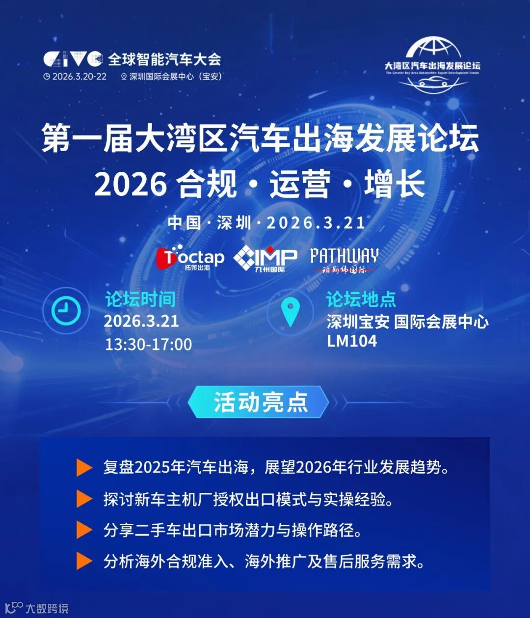 首届大湾区汽车出海发展论坛,诚邀各位出海同仁共探破局之道,这不仅是一场论坛,更是您对接全球资源的桥梁。
