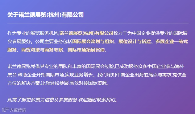 如需了解更多展会信息及参展服务,欢迎随时联系我们。