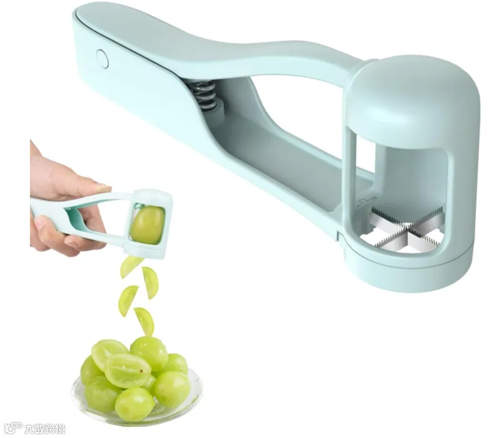 GRAPE CUTTER 是一款葡萄切割器,来自国人卖家生产制造,该产品造型简约,使用方便,住手柄,将水果放入切割槽中,按下推杆即可获得四片均匀的水果切片,适合制作沙拉,水果蛋糕或为幼儿准备餐食。