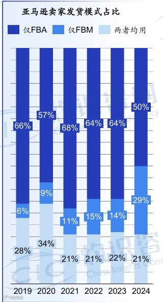 亚马逊平台数据显示:2024年FBM卖家占比达29%,较2019年的6%大幅增长,印证更多卖家正转向自发货以保障利润;相较FBA,FBM可压缩物流成本10%–30%。