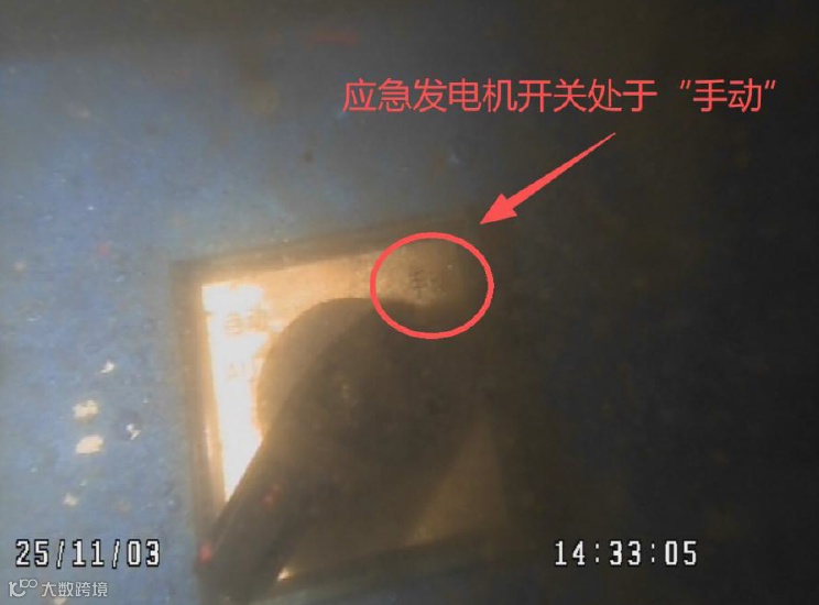 1951时15秒,两船相距0.8海里时,1号、2号发电机组突发停车,全船失电,主机停转、舵机失灵,航行灯及生活区照明全部熄灭。