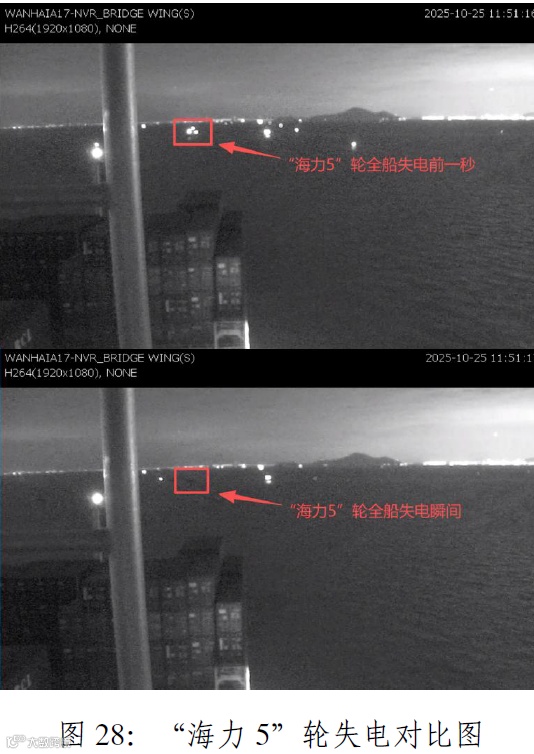 “海力5”轮负主要责任:轮机长、二管轮为主要责任人(未确保应急设备正常运行,涉嫌交通肇事罪);船长为次要责任人(应急处置指挥失当)。
