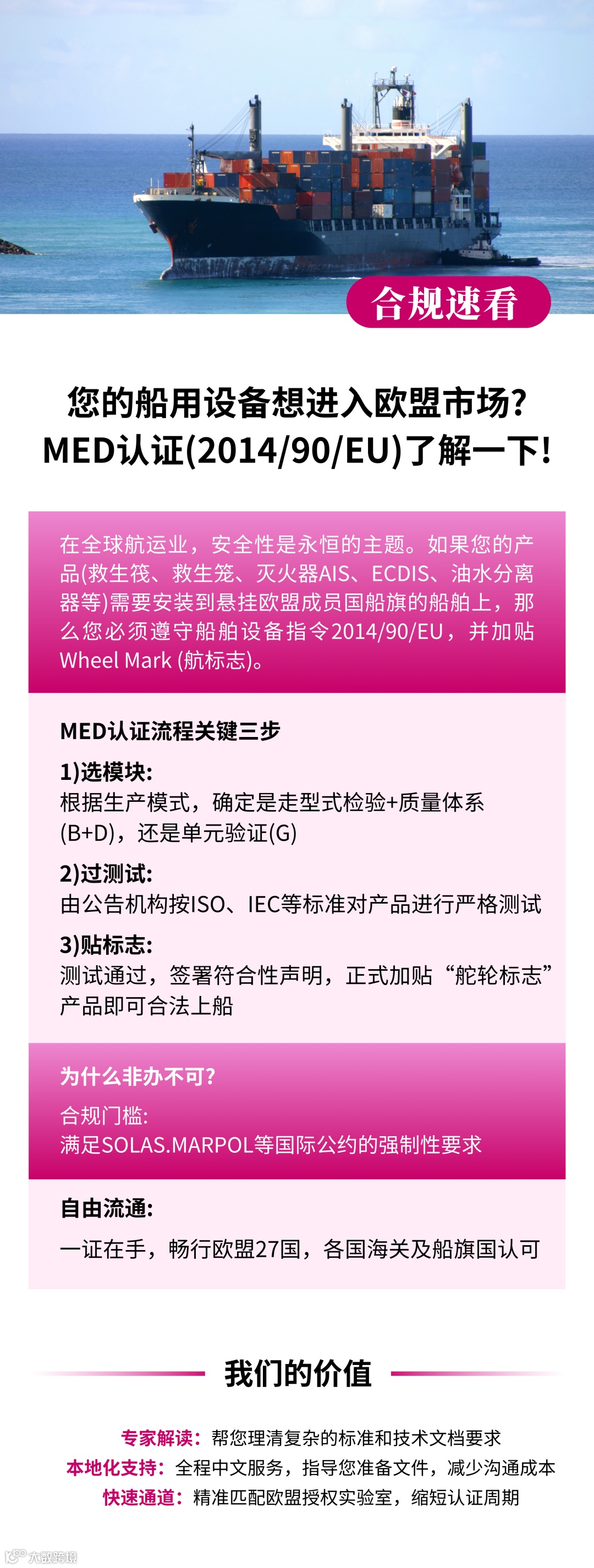 您的船用设备想进入欧盟市场?MED认证(2014/90/EU)了解一下!