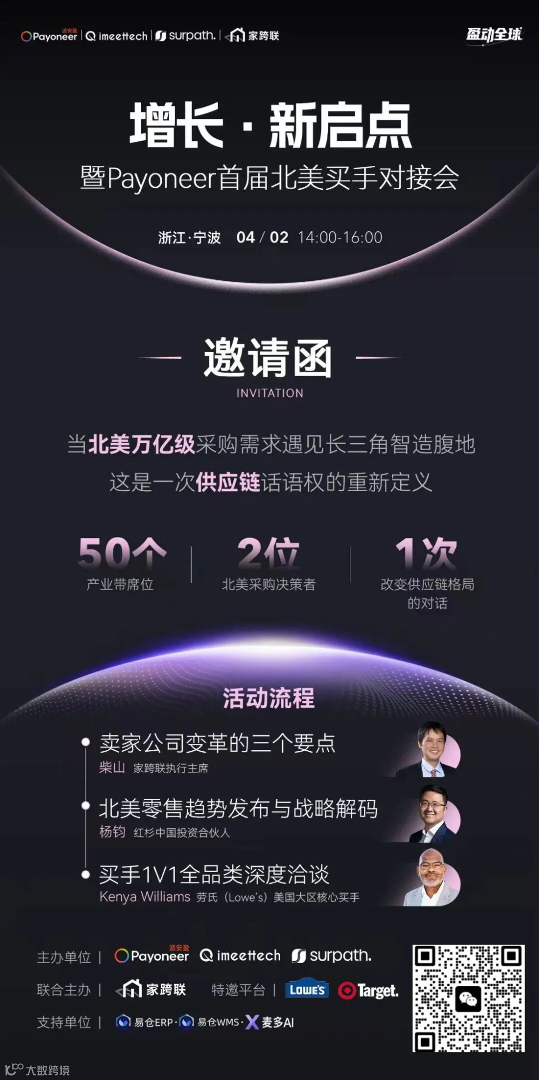 跨境出海迎来重要机遇。家跨联联合派安盈共同主办的「增长・新启点」北美买手对接会将于宁波举办。本次活动为闭门高端见面会,聚焦高门槛、强私密、精准匹配,助力中国商家直接对接北美两大万亿级商超——Lowe’s与Target官方核心买手,打通家居、建材、日用、时尚、电子等品类出海关键渠道。