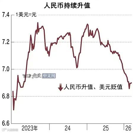 但人民币过快升值可能加剧出口压力、放大通缩风险。中国人民银行自2025年12月起,在超90%的交易日将人民币中间价向贬值方向引导,以抑制单边升值预期。央行行长潘功胜3月明确表示,人民币汇率将“保持在合理均衡水平上的基本稳定”。