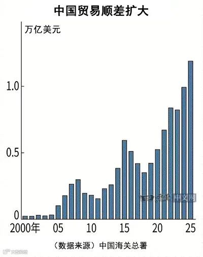 据中国海关总署数据,2025年中国贸易顺差达1.1889万亿美元,同比增长20%,首次突破1万亿美元。尽管对美出口因关税博弈下降两成,但汽车等产品对东南亚、欧洲出口大幅增长,弥补并扩大了顺差缺口。