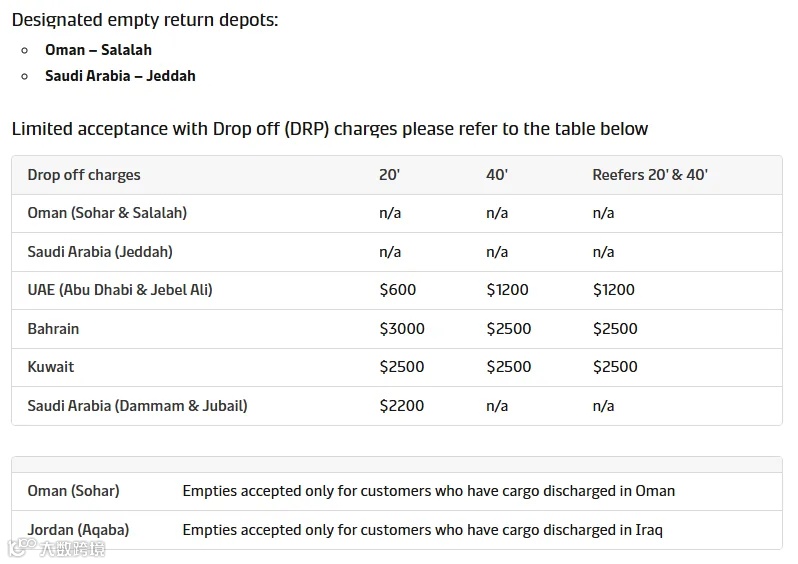 - 阿曼苏哈尔港:仅接收在阿曼本地卸货客户的空箱