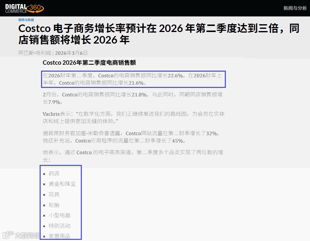 Costco Q2数字渠道销售额同比增长22.6%,增速为整体营收的三倍。结合财报数据与市场动向,三大选品风口浮现: