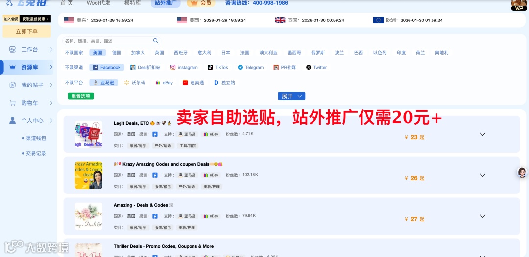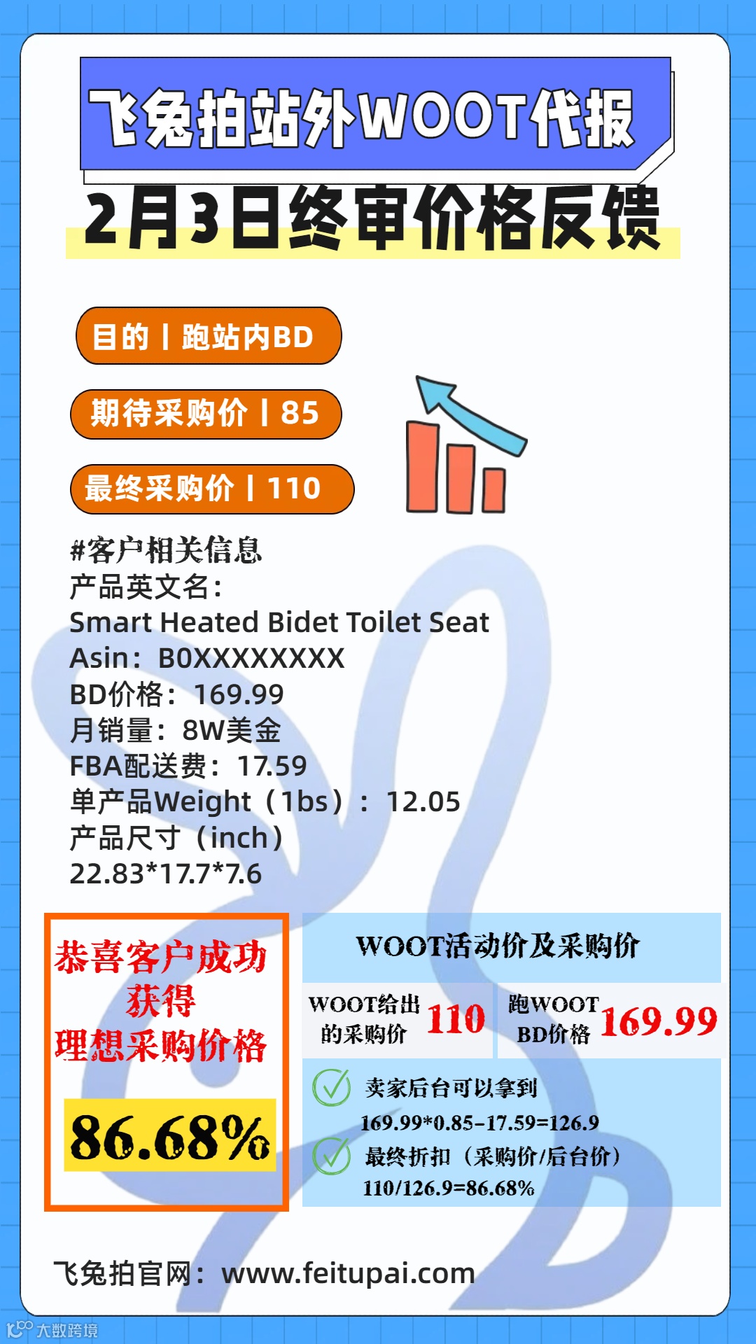 依托一手官方经理资源,多线对接,高效申报Woot活动;三轮BD节奏推进,助力产品获得高曝光与强转化。采购价具备竞争优势。