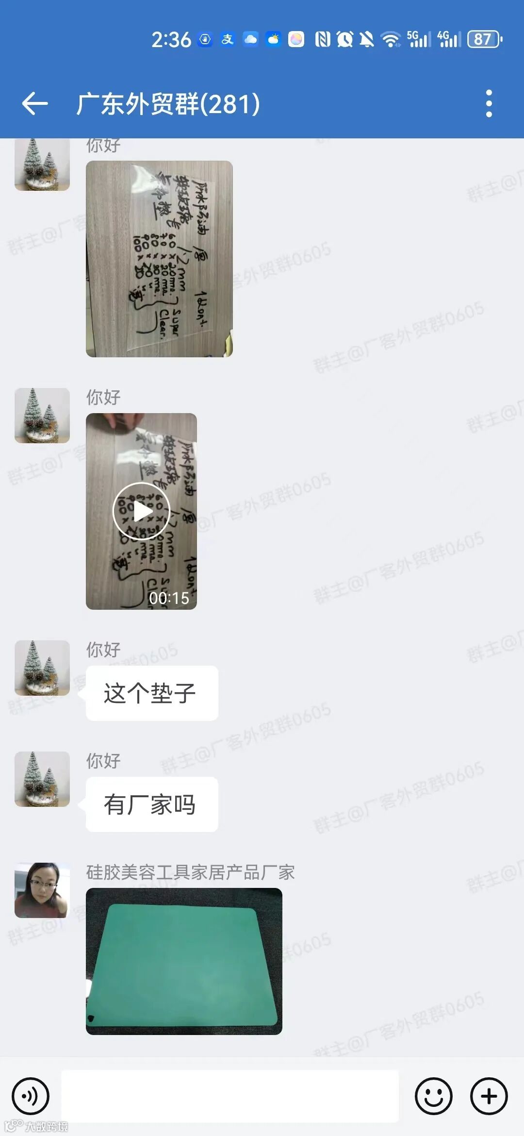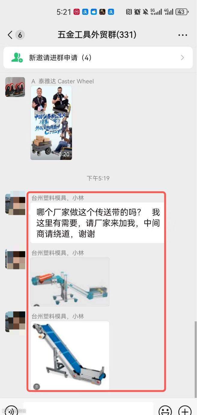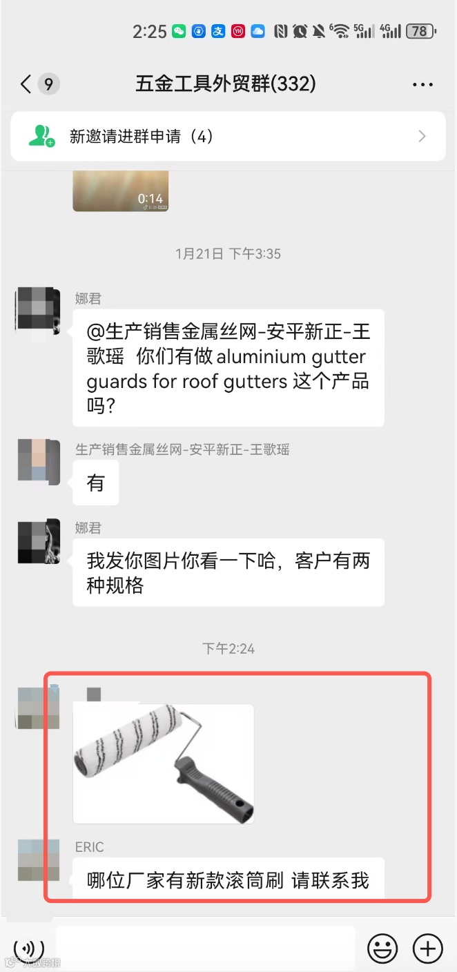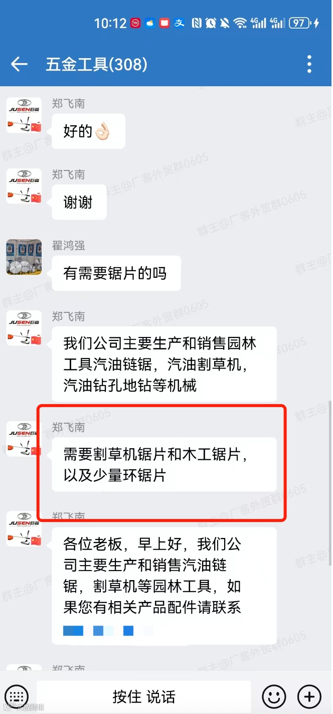 群内可发布外贸采购信息、产品销售信息(支持文字、图片、视频),需合理控制广告频次,严禁刷屏。