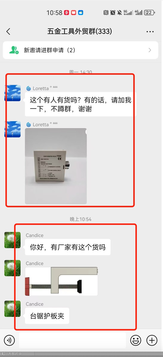 现有两个五金工具外贸交流群,成员分别超330人、300人。入群仅限汽配行业外贸公司及生产工厂。